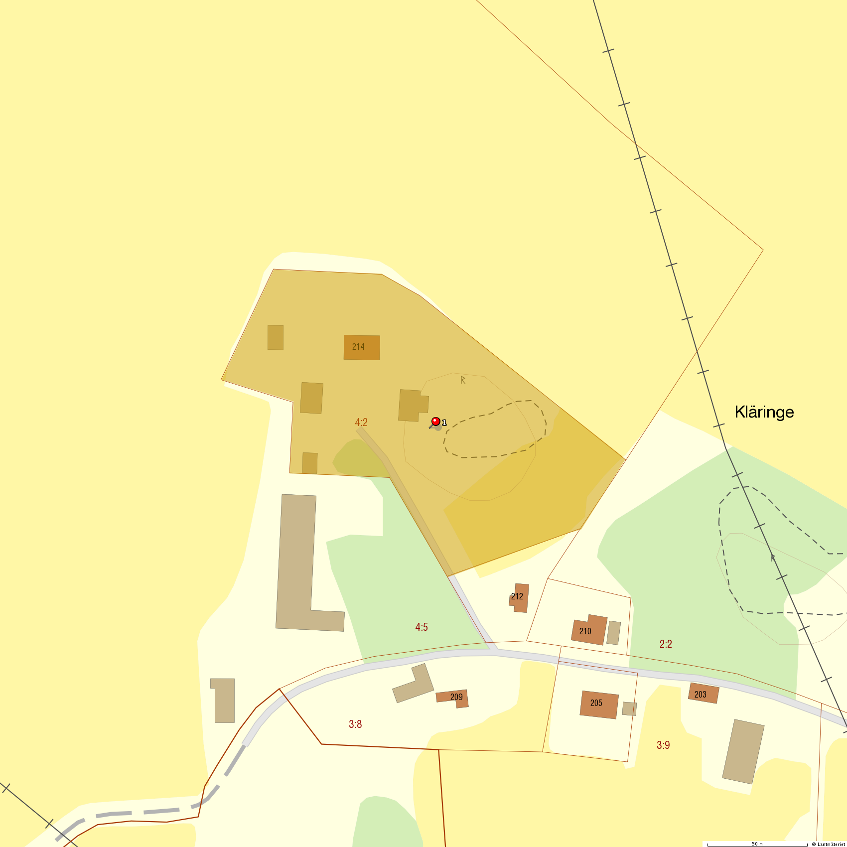 Tomtarea 16415 kvm. Tomten är friköpt.