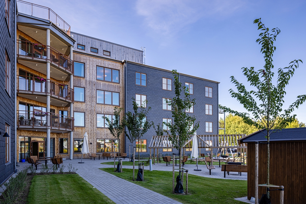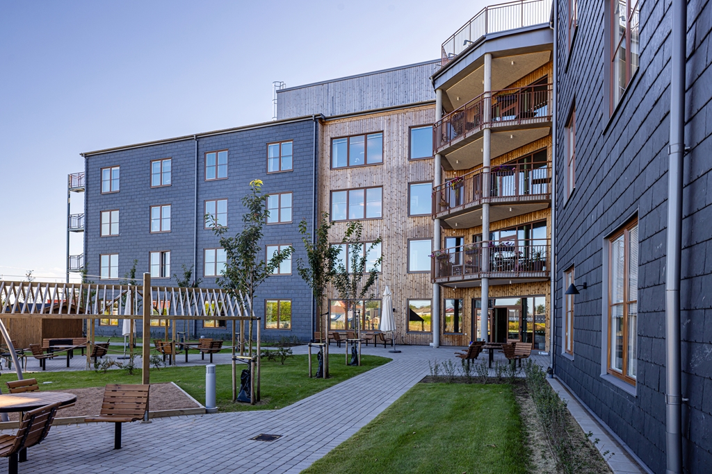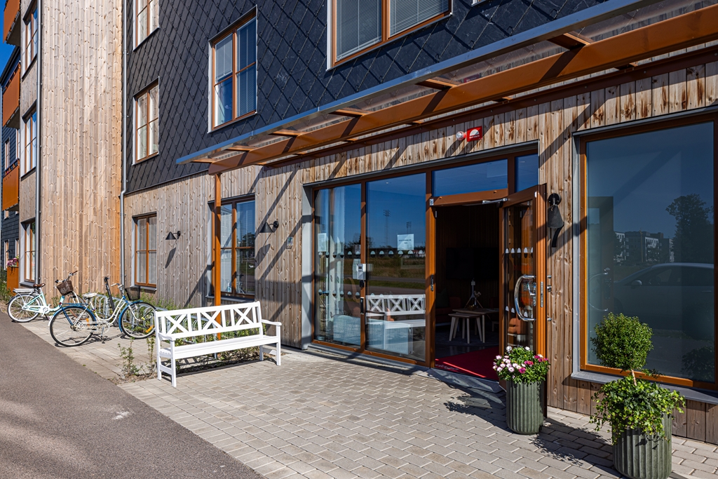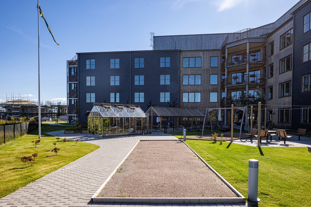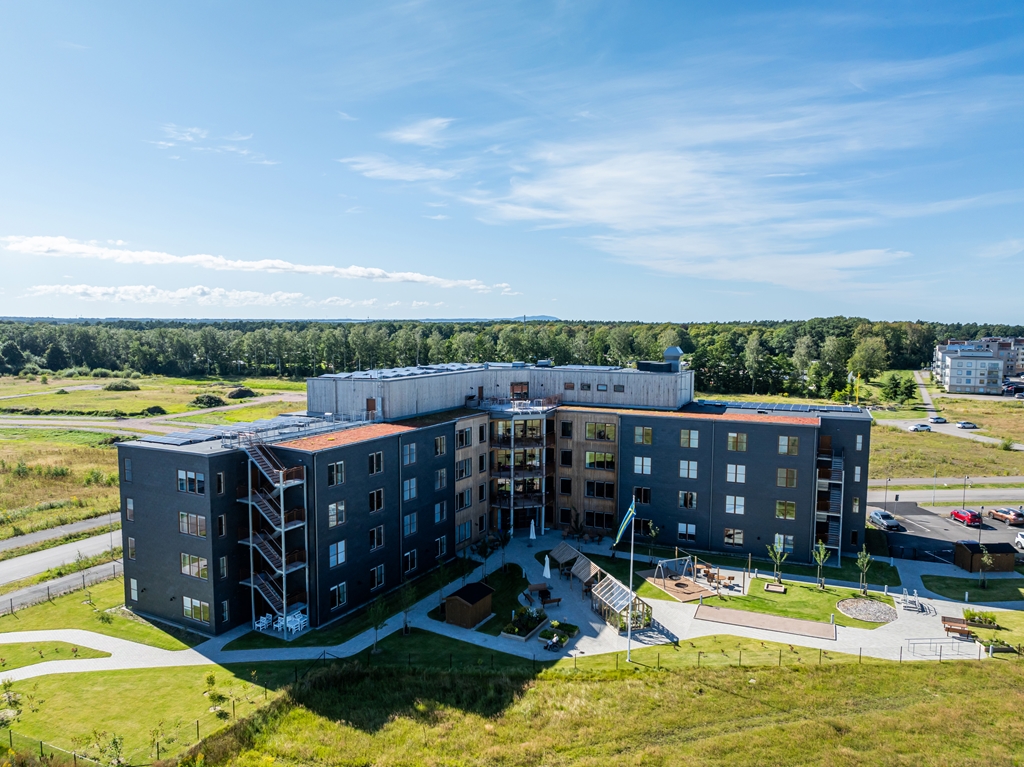 Denna nybyggda fastighet stod färdig i november, 2023. Fastigheten har en fasad av thermowood och skiffer, sedumtak, en fin och inbjudande innergård med grönytor, ett växthus, grill och flera sittgrupper. Fastigheten har 5 våningar, 2 hissar och rymmer totalt 80 lägenheter/boenderum. I anslutning till samtliga lägenheter finns gemensamt samlings-, mat- och dagrum. I lokalerna finns även personalutrymme och kontor.