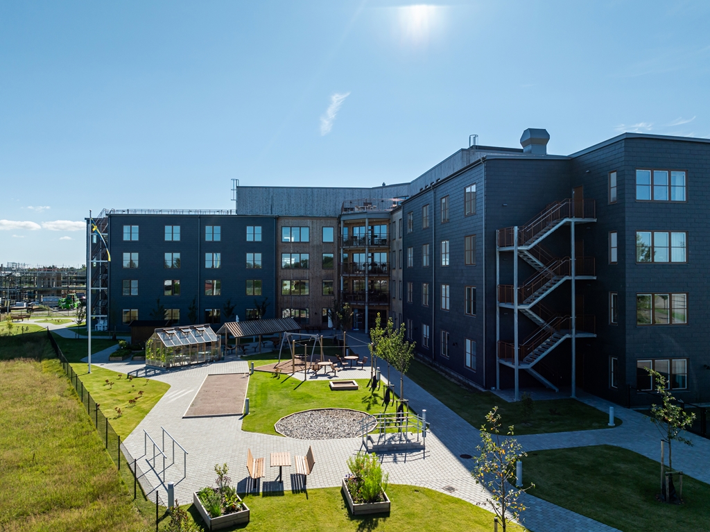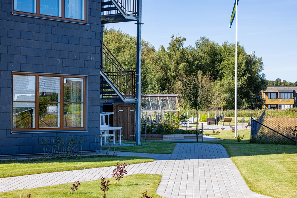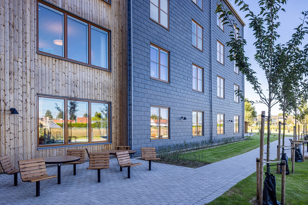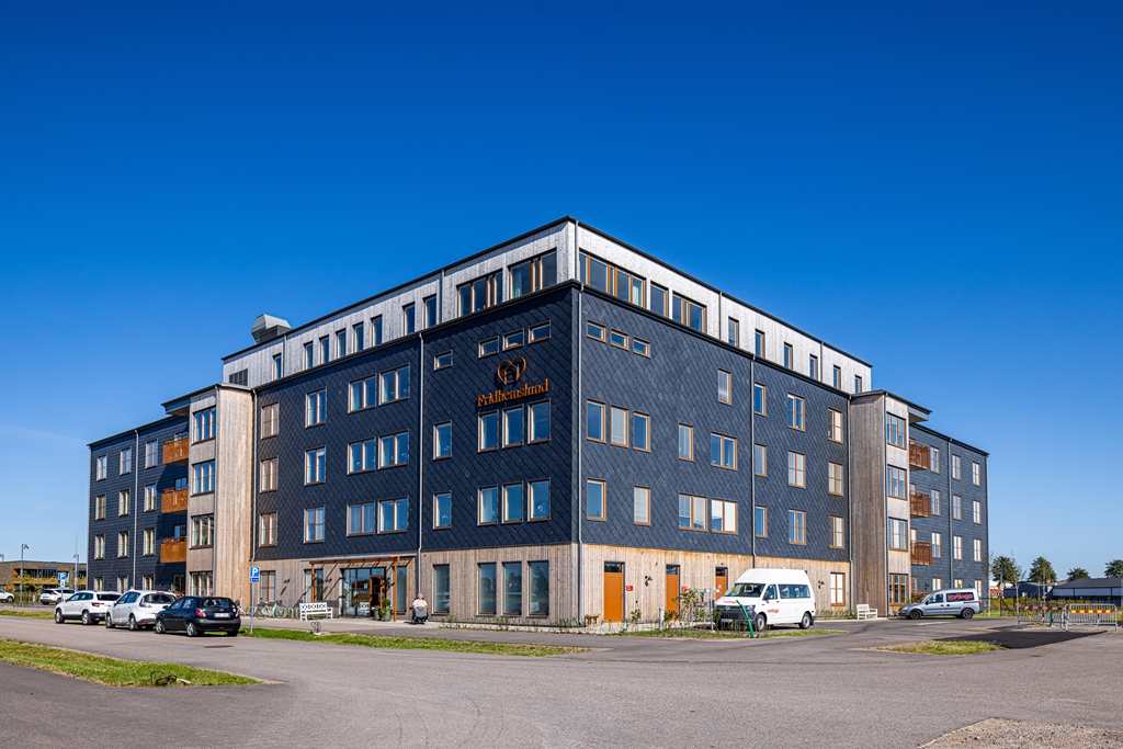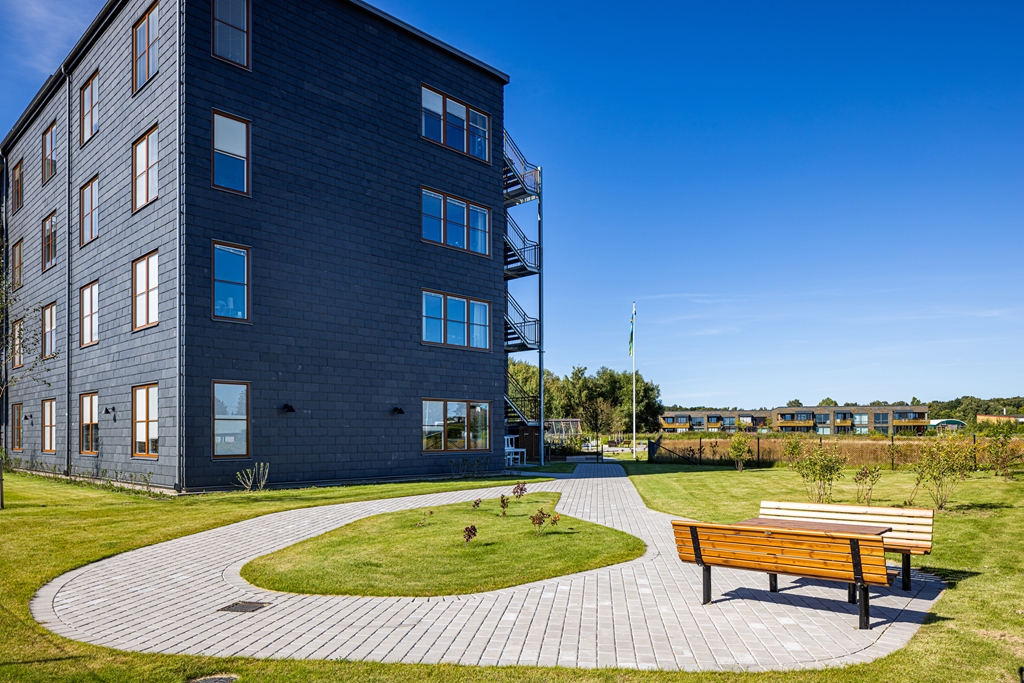 Denna nybyggda fastighet stod färdig i november, 2023. Fastigheten har en fasad av thermowood och skiffer, sedumtak, en fin och inbjudande innergård med grönytor, ett växthus, grill och flera sittgrupper. Fastigheten har 5 våningar, 2 hissar och rymmer totalt 80 lägenheter/boenderum. I anslutning till samtliga lägenheter finns gemensamt samlings-, mat- och dagrum. I lokalerna finns även personalutrymme och kontor.