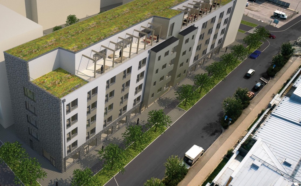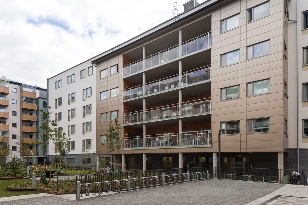 Byggnaden innefattar vårdboende och en fyra kommersiella lokaler i entréplan mot Kungsängsgatan.