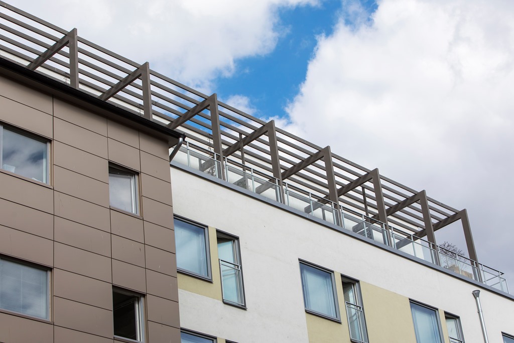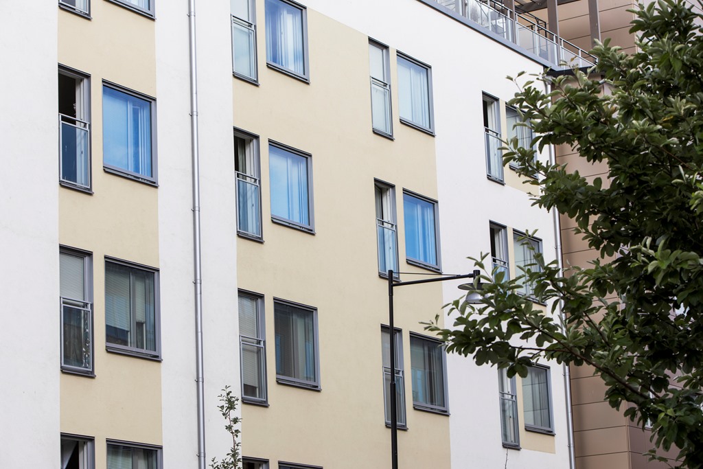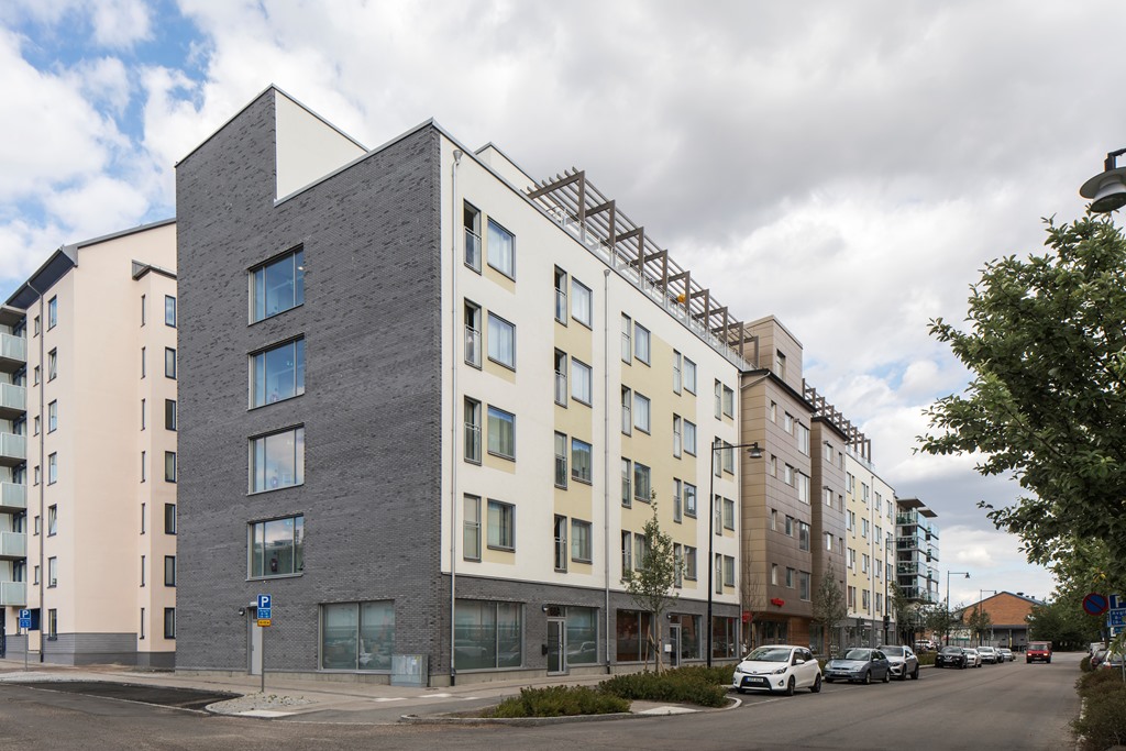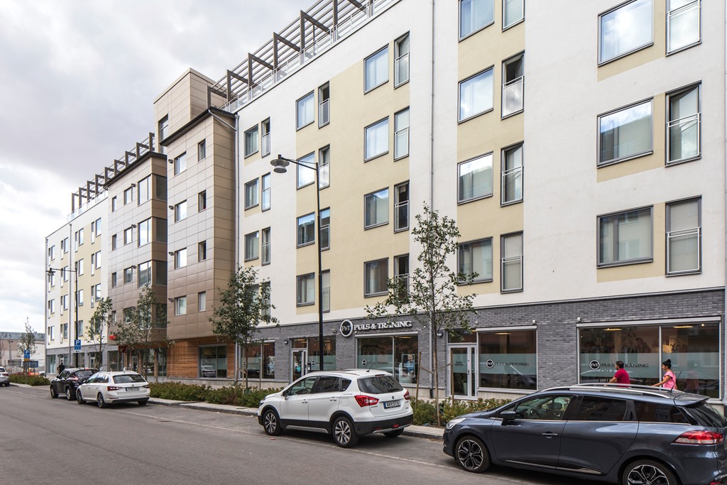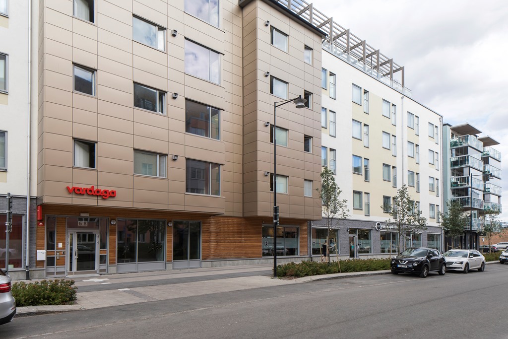 På fastigheten finns en byggnad i sex våningar inklusive garage.