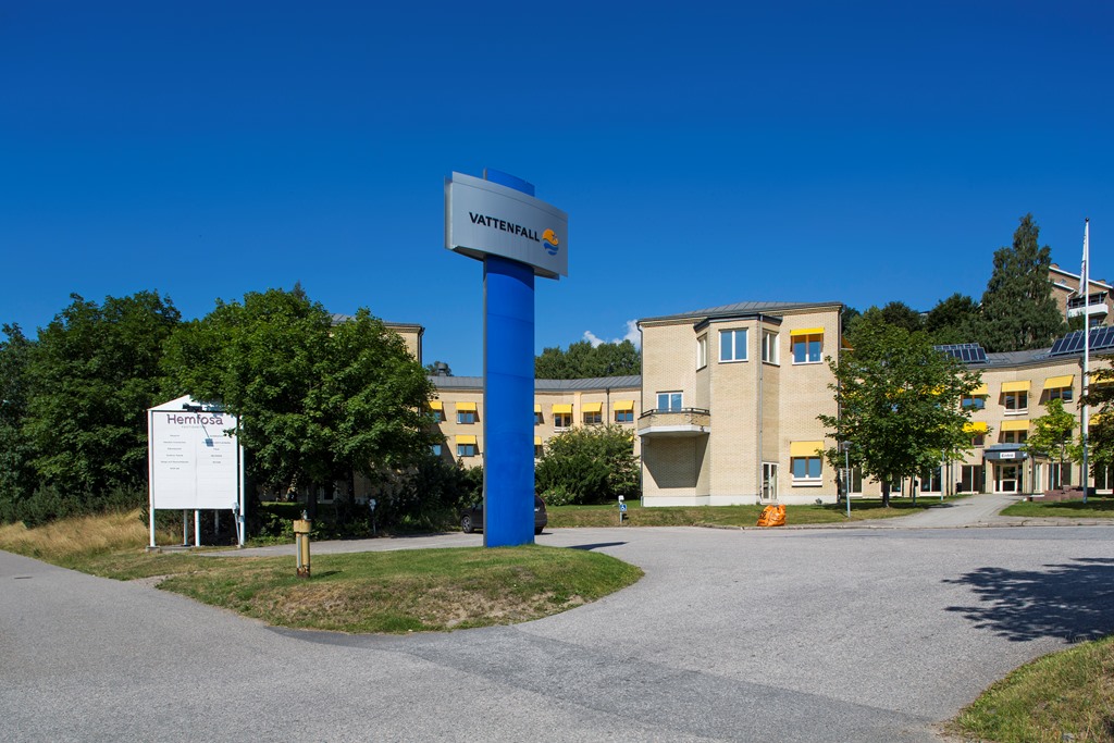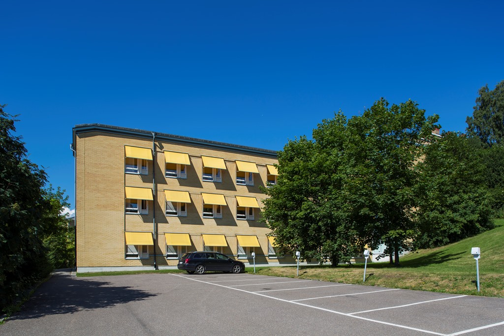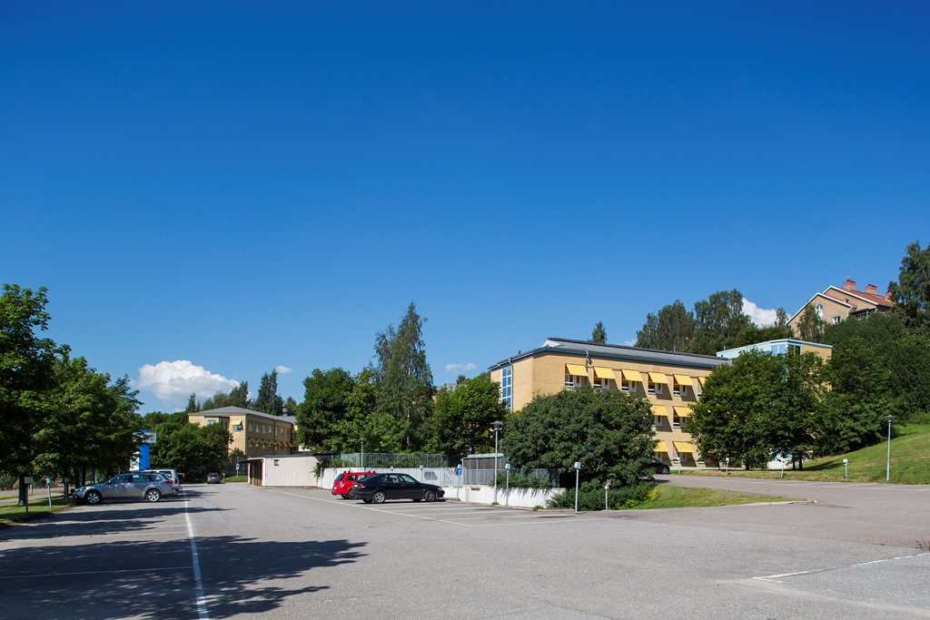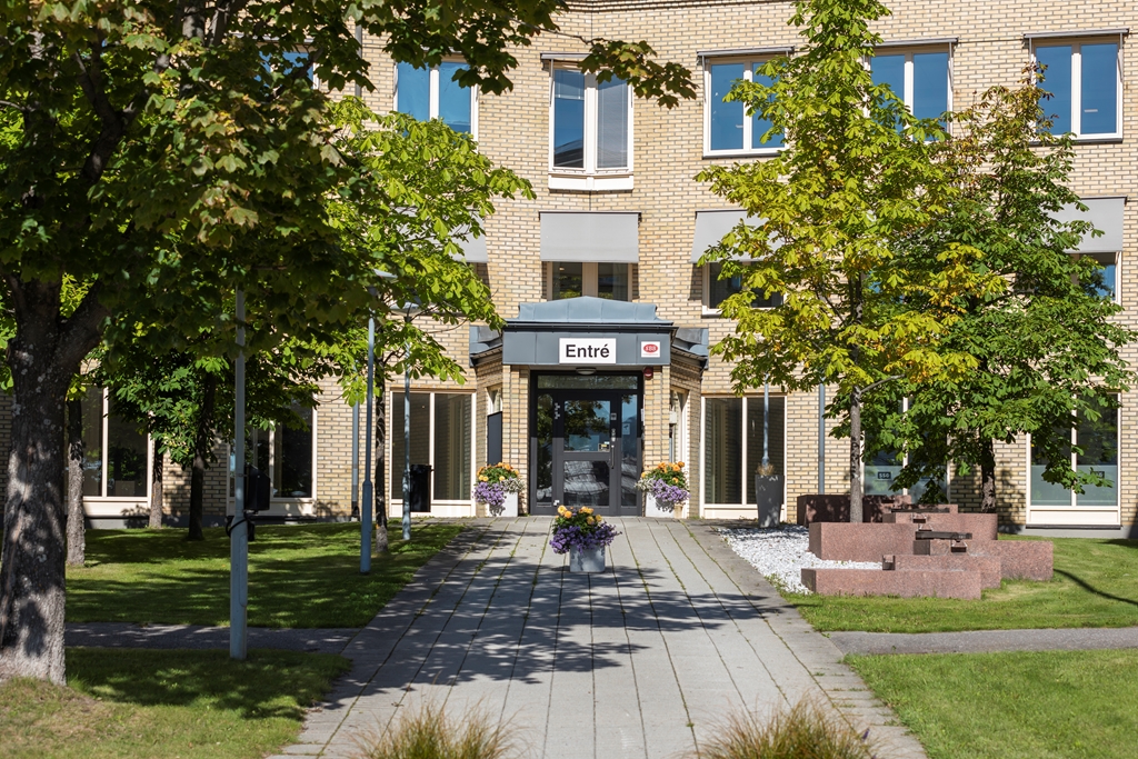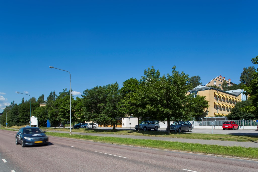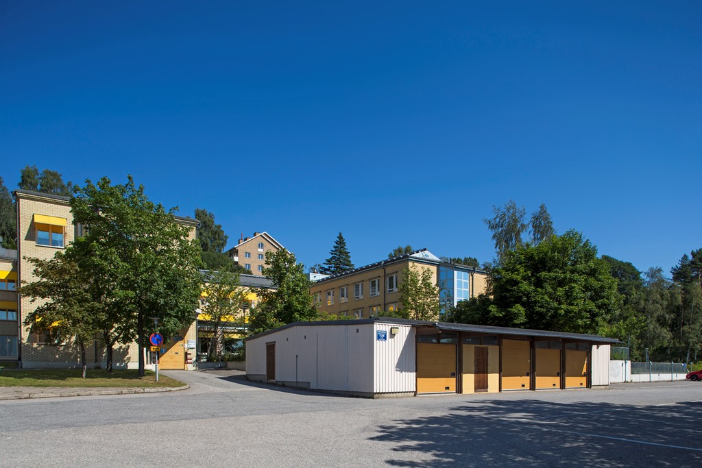 Utvändig mark består av asfalterade körytor samt gräsmattor.