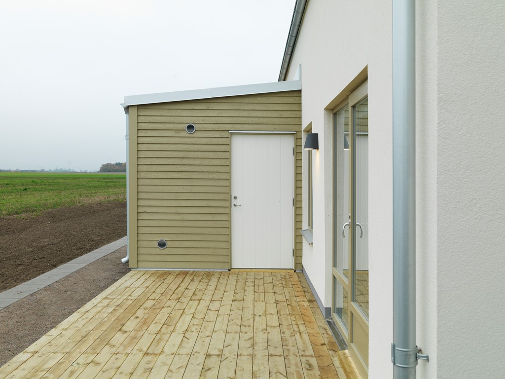 På fastigheten finns en byggnad uppför 2018. Byggnaden har stomme & bjälklag av betong, putsad fasad och papptak.