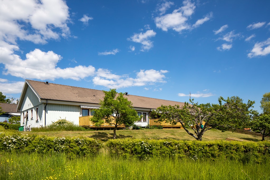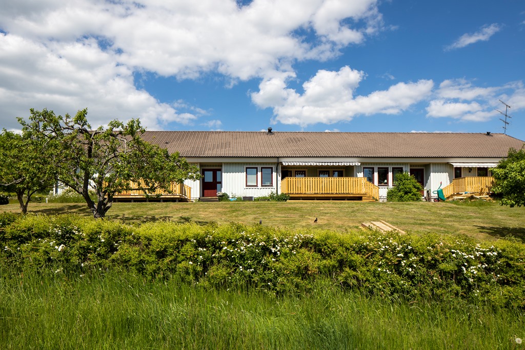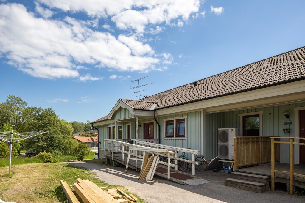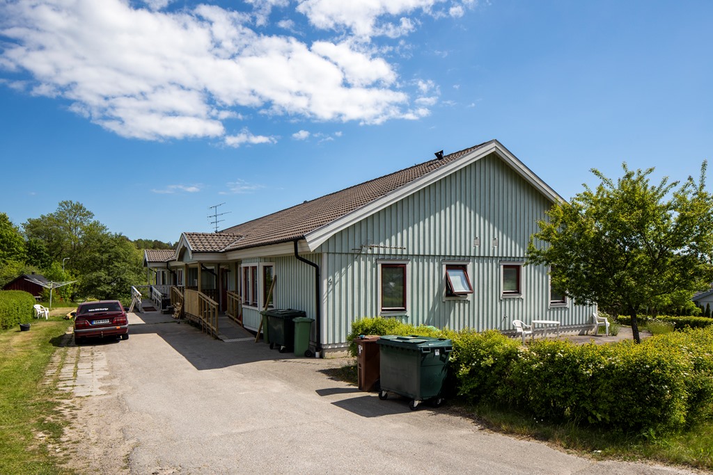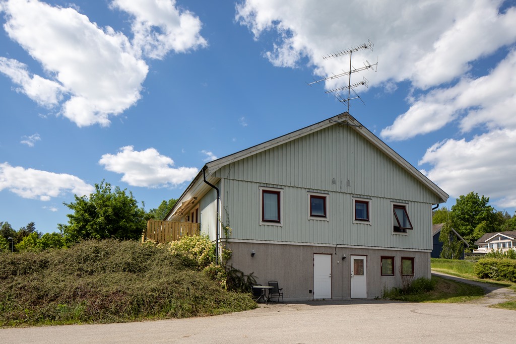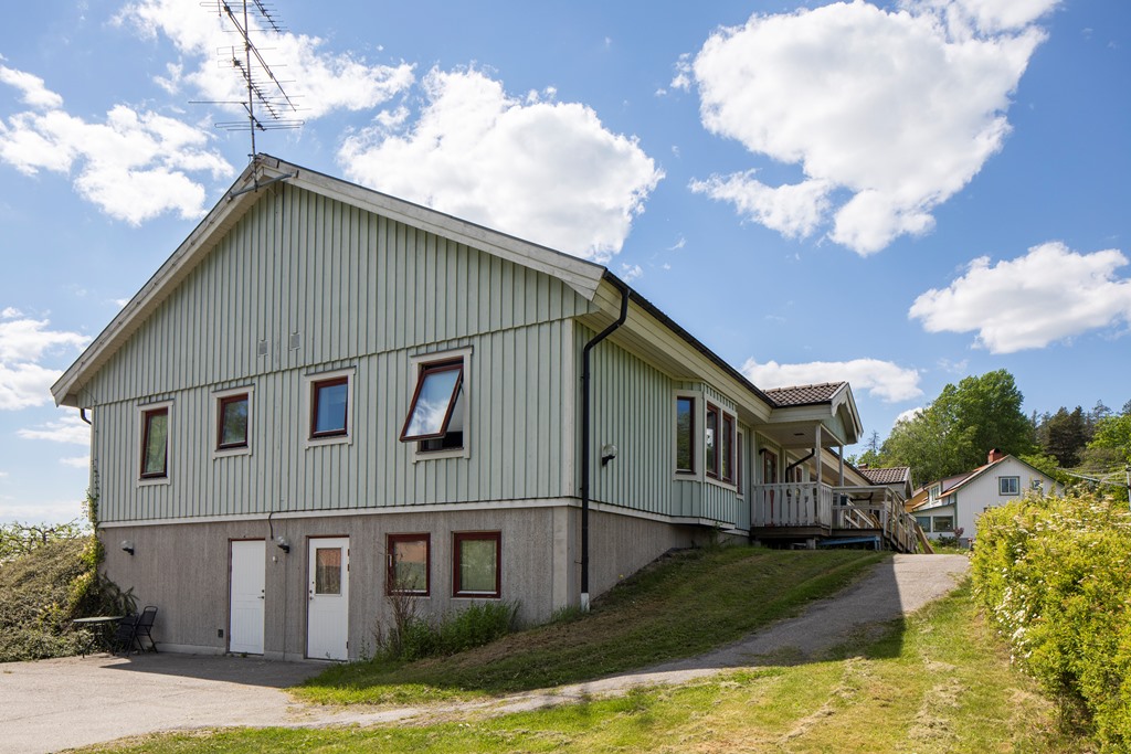 Enplanshus i trä beläget i bostadsområdet Oxbacken. Tillbyggd 2012 med 2 st lägenheter på vardera 50 kvm.