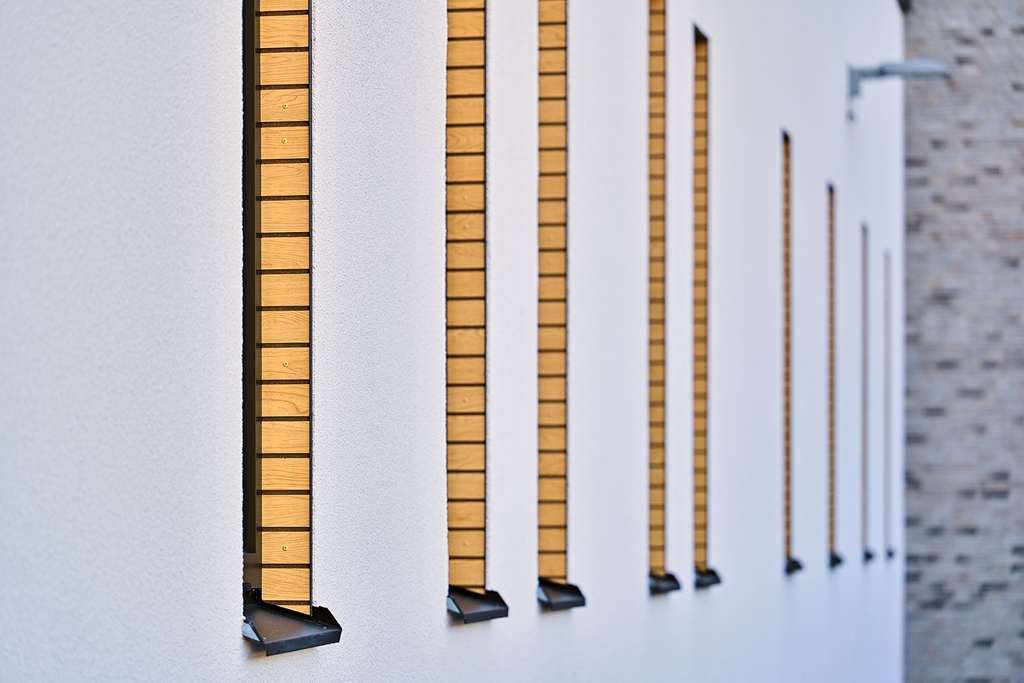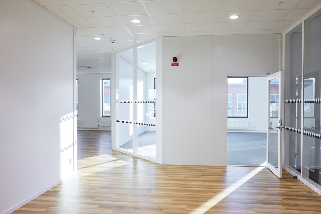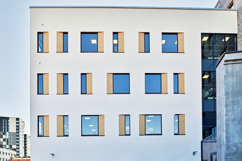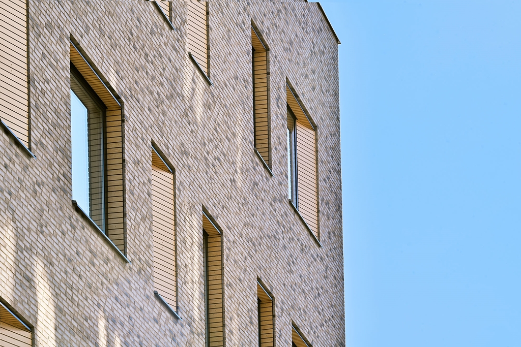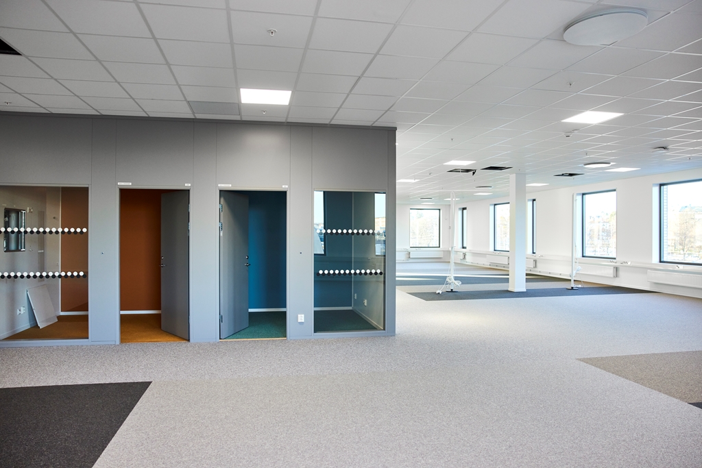 Du välkomnas genom den indragna entrén som framhävs av varma och inbjudande träribbor som också speglas i husets fönsternischer och inredning. Entréplanet är i öppet plan med reception för mottagare av besökare. På andra våningen är semipublika funktioner, som tex konferensavdelningar. Resterande våningsplan rymmer de interna kontorsavdelningarna.
