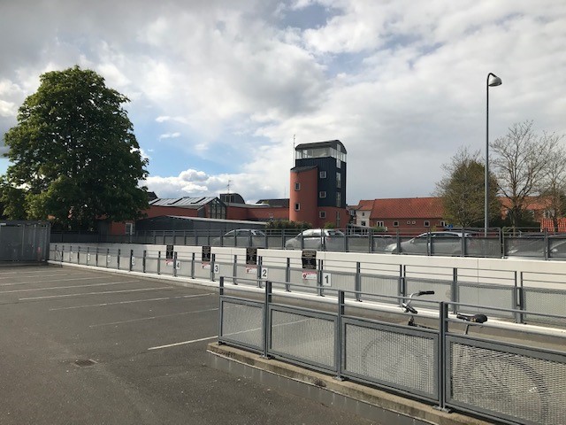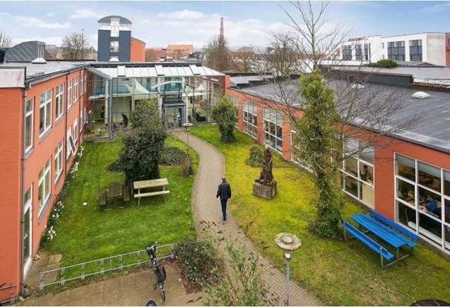 Fastigheten ligger centralt i centrum av Silkeborg, bara några hundra meter från Silkeborg station och inom gångavstånd till butikerna i gågatan.