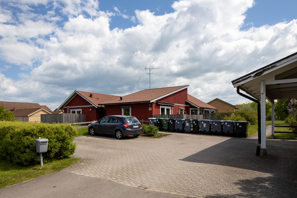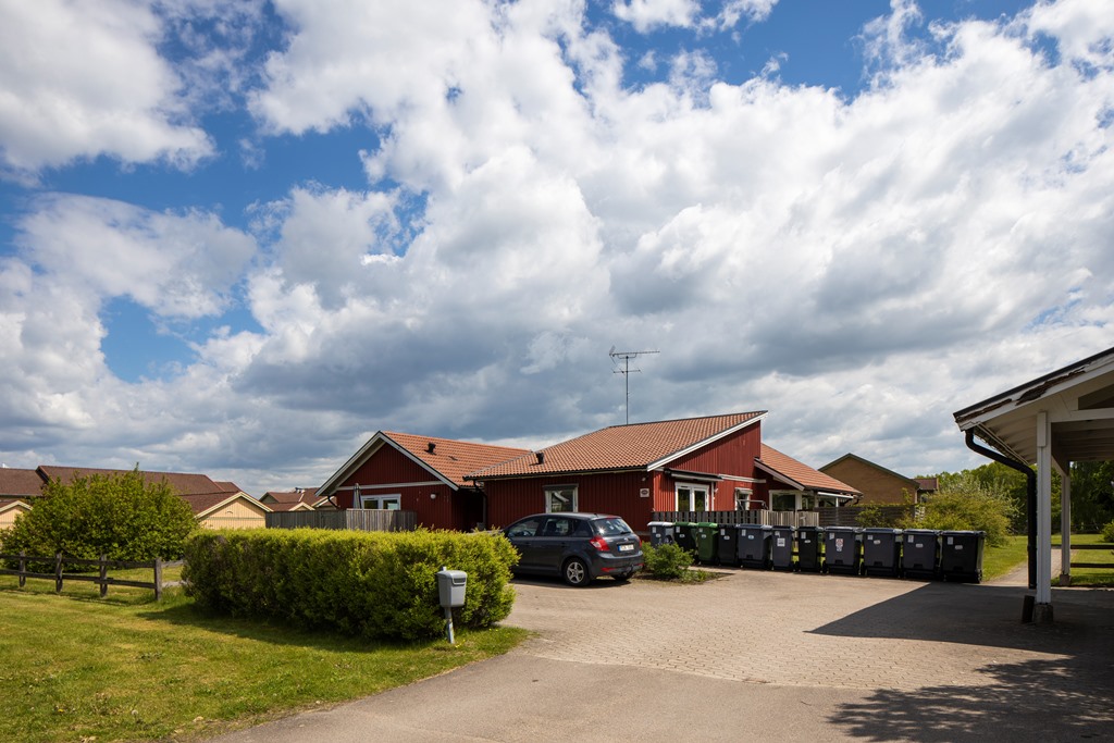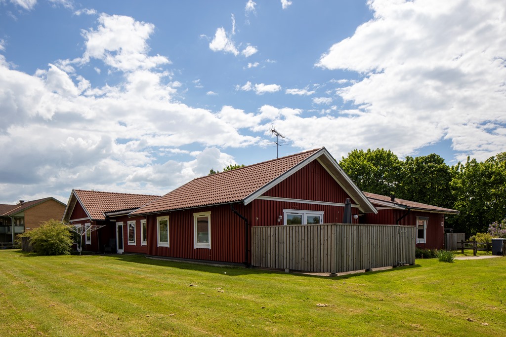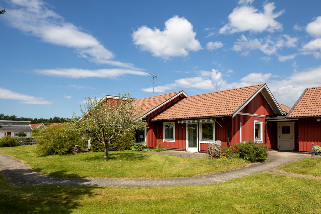 PÅ Södergården 2 i Hässleholm finns ett LSS-boende. Villan har en klassisk röd färg på sina träfasader som kombinerats med vita detaljer på fönsterkarmar etc. Till fastigheten hör en trädgård till.