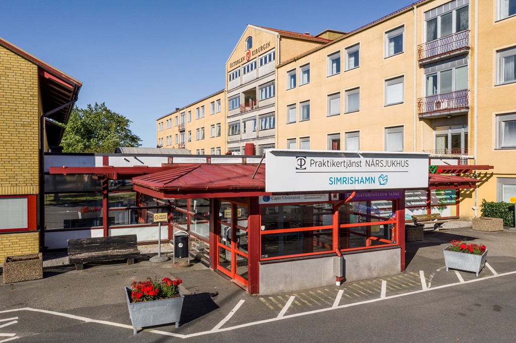 Fastigheten Solrosen 9 finns i Simrishamn och utgör sjukhusområdet. Huvudbyggnaden uppfördes 1958 och har därefter byggts på med både tillbyggnader och intillliggande byggnader löpande under åren. Huvudbyggnaden är T-formad med 6 våningar och övriga byggnader har två eller en våning. Det finns källare under huvudbyggnaden som innehåller personal-, transport- och förrådsytor samt teknikutrymmen.