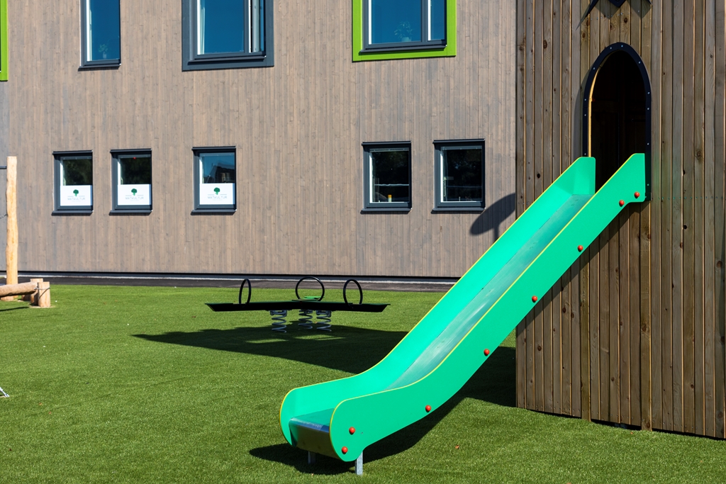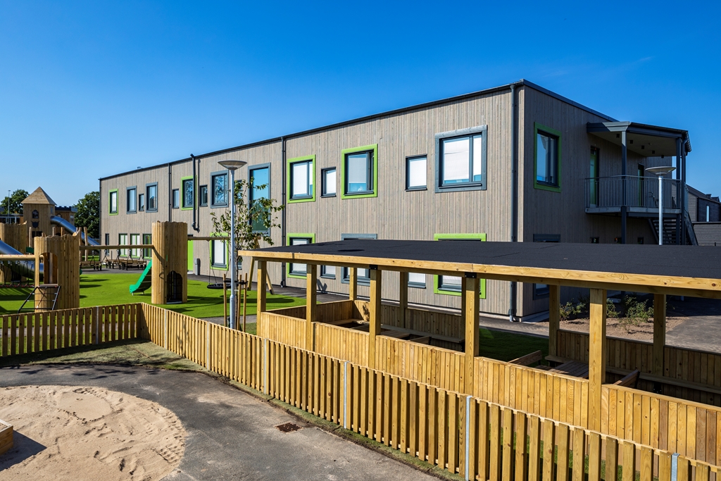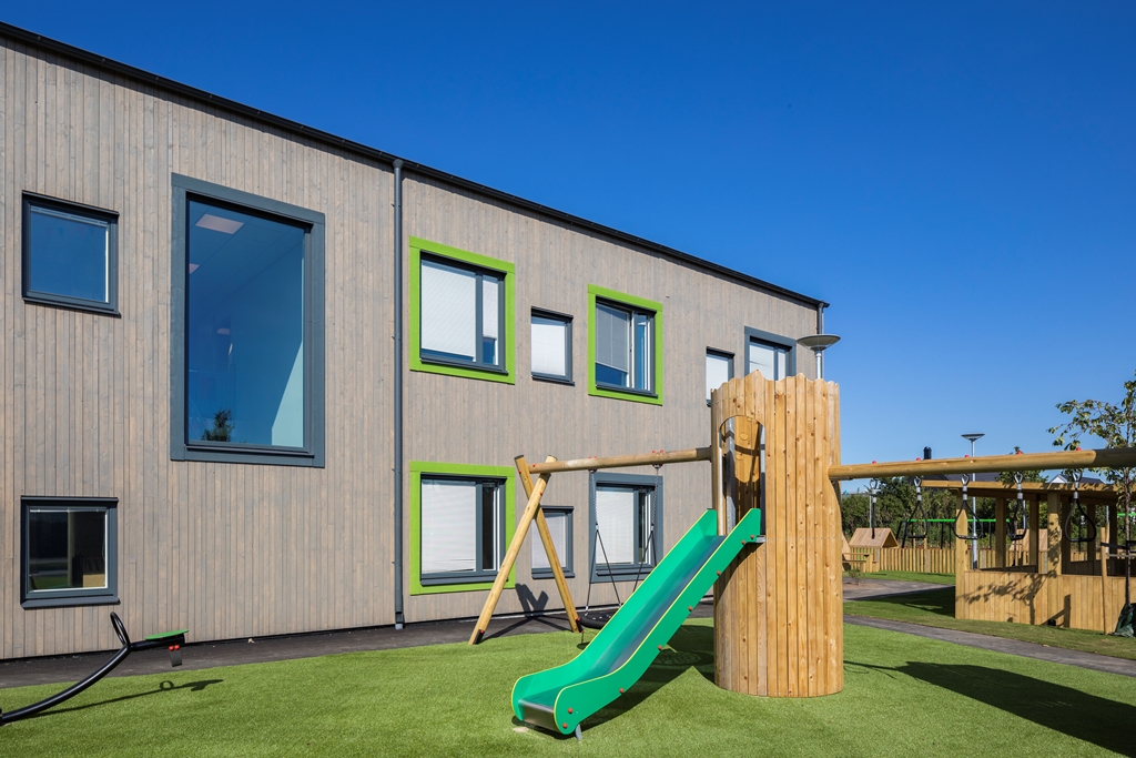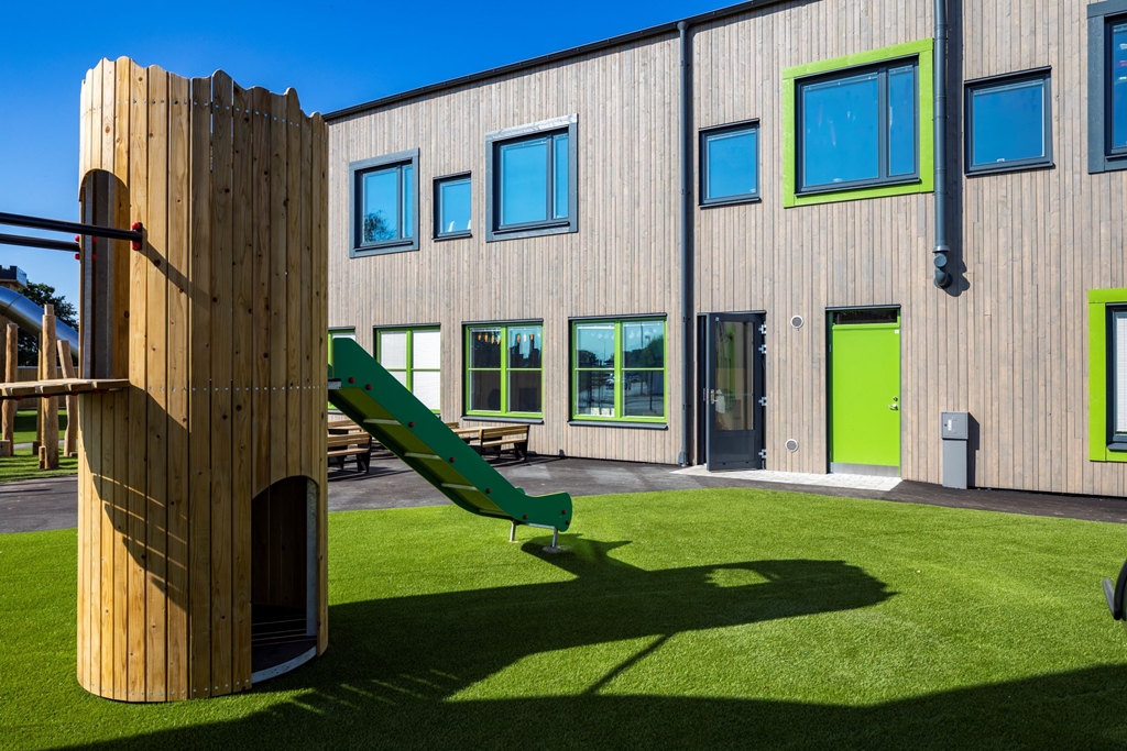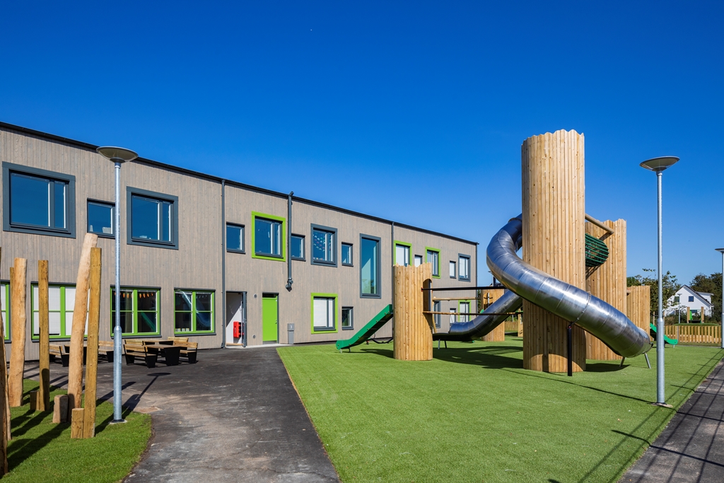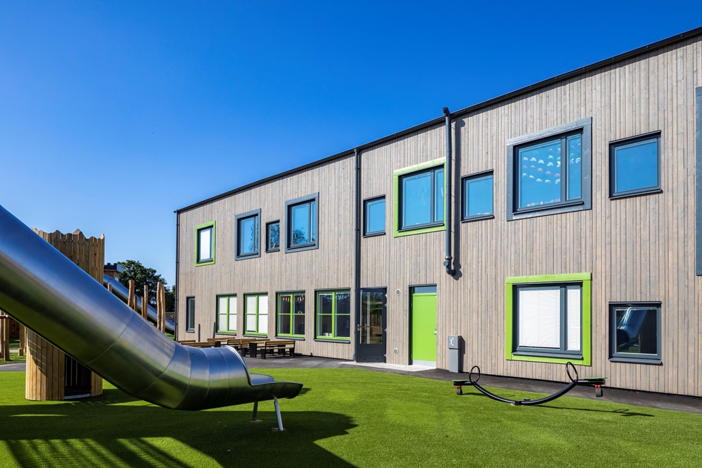 Med flexibla, hållbara och kreativa inomhusmiljöer och en nytänkande vacker utemiljö skapas trivsel för såväl barn som personal. Här ges förskoleeleverna möjlighet till lärande och lek i kvalitativa miljöer som inspirerar till ökad kreativitet och aktivitet. Utemiljön är fylld av olika typer av utrustning i stort och smått. Med olika zoner och verktyg kan lek och pedagogik ske passande för olika intensitet, åldrar och intressen. Solvikens förskola är en del av den nya trädgårdsstaden , ett nytt område med småskalig traditionell kvartersstruktur och närhet till havet. Intill fastigheten löper också ett stengärde som bevaras och rensas. Gärdet är representativt för Viken och påminner om dess historia.