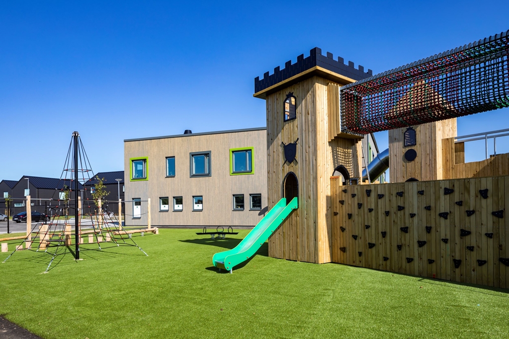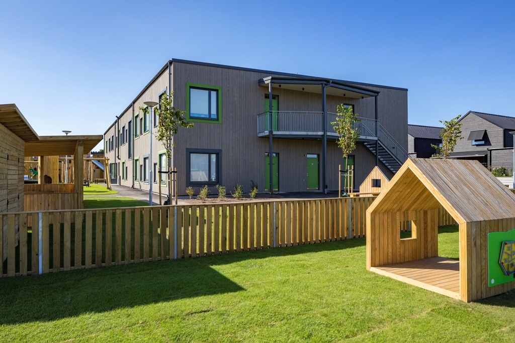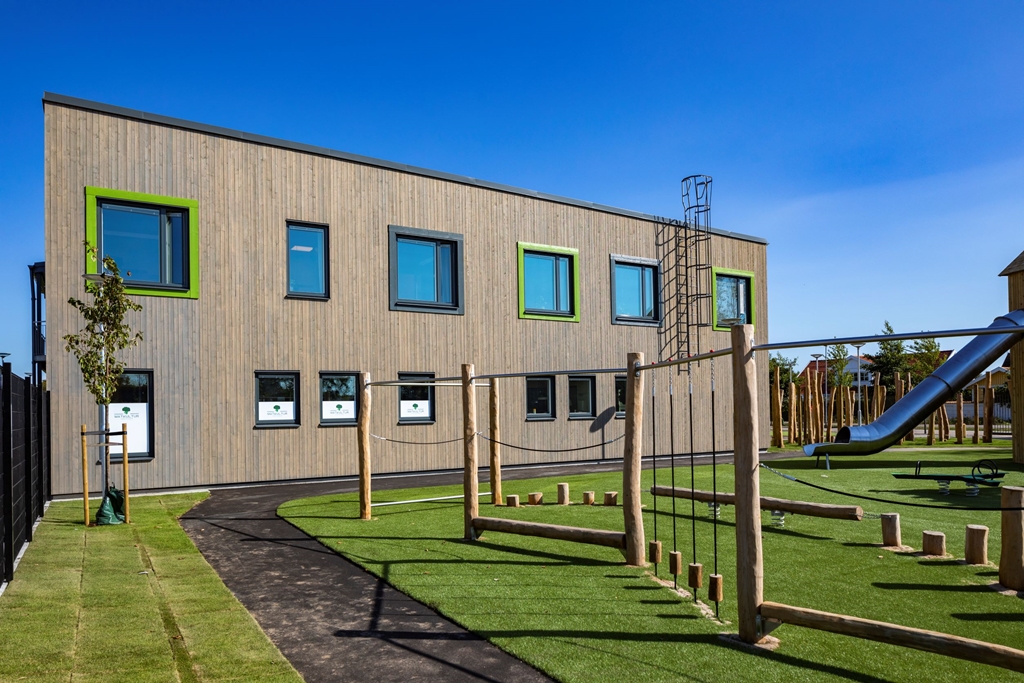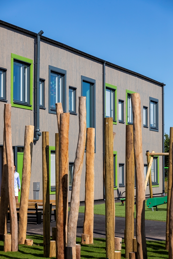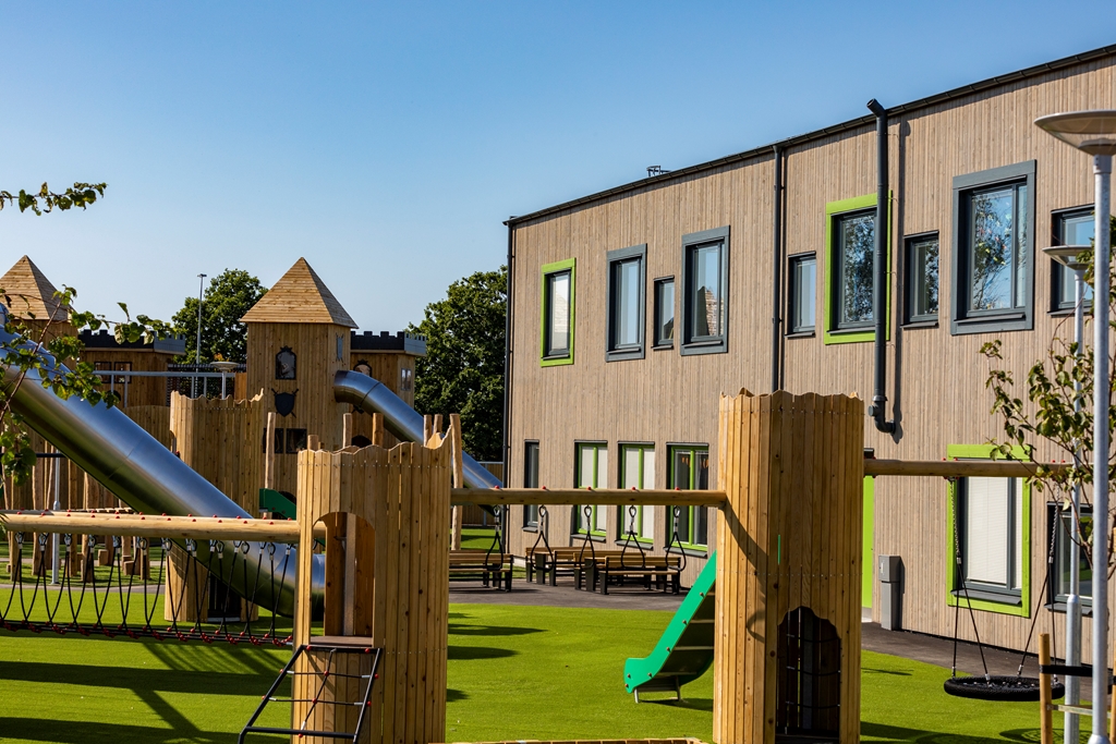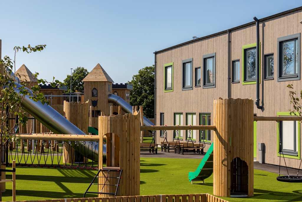 Med flexibla, hållbara och kreativa inomhusmiljöer och en nytänkande vacker utemiljö skapas trivsel för såväl barn som personal. Här ges förskoleeleverna möjlighet till lärande och lek i kvalitativa miljöer som inspirerar till ökad kreativitet och aktivitet. Utemiljön är fylld av olika typer av utrustning i stort och smått. Med olika zoner och verktyg kan lek och pedagogik ske passande för olika intensitet, åldrar och intressen. Solvikens förskola är en del av den nya trädgårdsstaden , ett nytt område med småskalig traditionell kvartersstruktur och närhet till havet. Intill fastigheten löper också ett stengärde som bevaras och rensas. Gärdet är representativt för Viken och påminner om dess historia.