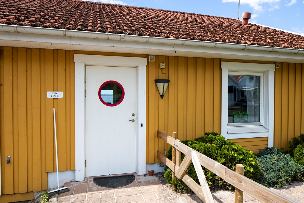 Takbeläggningen utgörs av tegel.