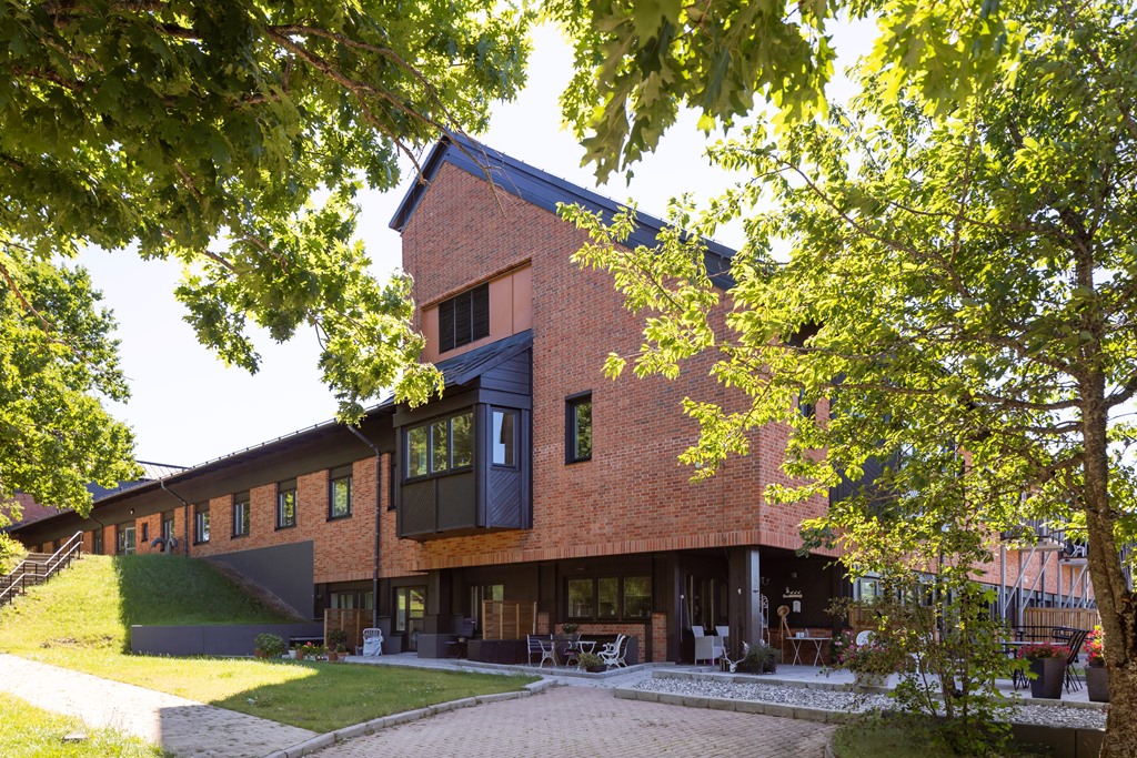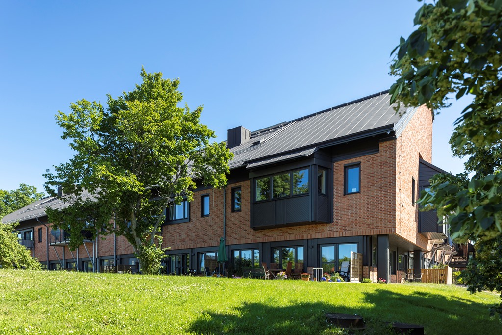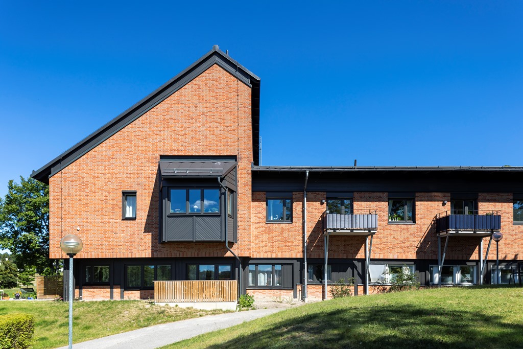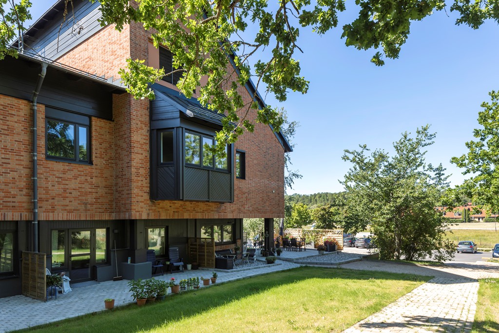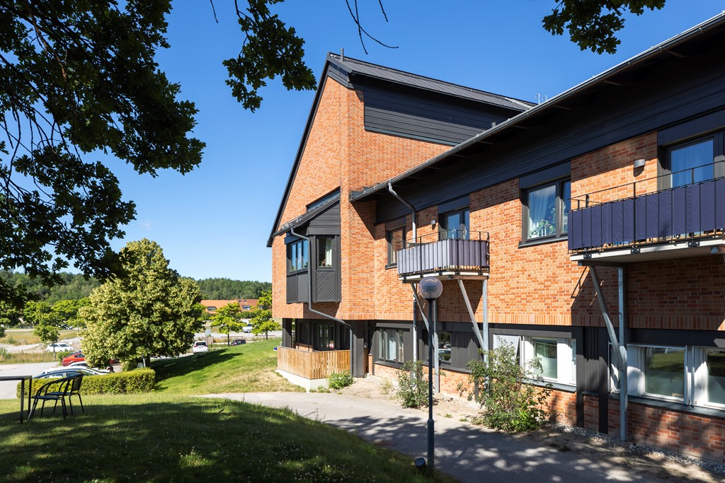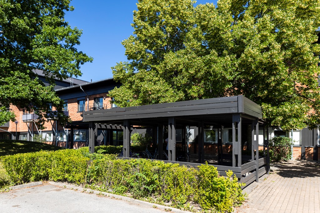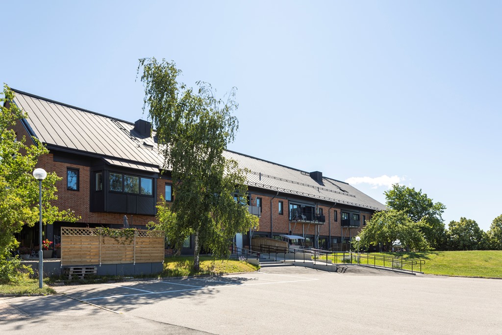 Trygghetsboende i Mariefred. Utöver lägenheterna finns även trevliga gemensamhetsytor så som en stor belyst innergård med ett Orangeri/växthus där de boende kan odla själva.