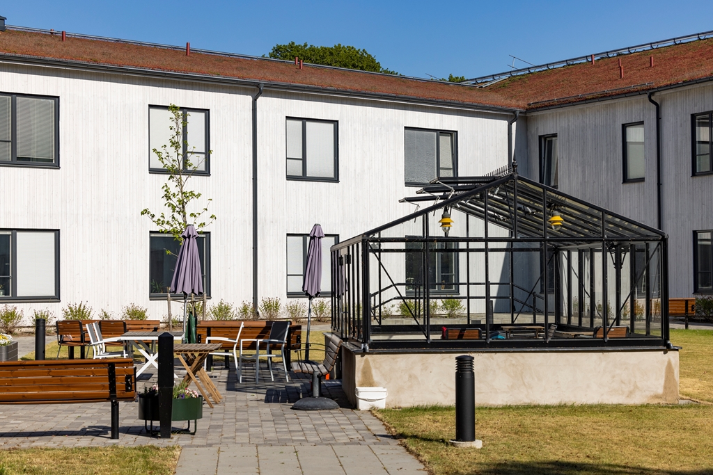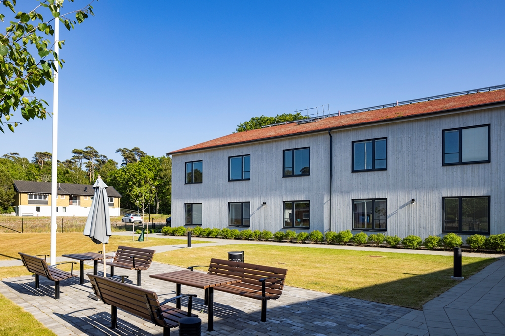 Äldreboendet Sommarsol omfattar 60 platser fördelat på två plan. Fastigheten är 28 000 kvm och ligger i en naturskön miljö med närhet till både sandstrand och hav. Arkitekten har använt sig av naturliga material såsom träpanel och sedumtak för att skapa en mjuk och ombonad känsla. Huset är på två plan och breder ut sig likt en stjärna med tre kilformade vingar som sammanstrålar mitten, detta ger en mer småskalig karaktär på huset.